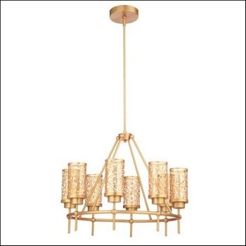 Thomas Lighting M2068-17 Brocade - Eight Light LED Chandelier, Couture Gold Finish with Laser Cut Metal Shade?M206817 Finish: Couture Gold Features: -Eight-light LED chandelier.-Laser cut metal shapes.-Dimmable with electronic dimmer.-Integrated high power LED provides 20 years lifespan.-Energy saving.-Eco friendly.-Each LED is rated at 350 lumens.-Lumens: 2700k. Options: -Available in Couture Gold or Brushed Nickel finishes. Color/Finish: -Color rendering index: 85. Specifications: -Accommodates (8) 7.5W LED bulbs. Dimensions: -Overall dimensions: 21'' H x 26.75'' W x 69'' D. Collection: -Brocade collection.