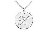| ✚✚✚ 14K White Gold Plain Letter K Script Disc Initial Pendant 14K White Gold Plain Letter K Script Disc Expressing your meaningful individuality with this scripted K initial pendant is stamped inside the coin-shaped of polished 14K white gold with the highest quality shine. This pendant gracefully dangles from standard 16 inches gold chain.