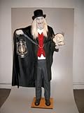 | ✚✚✚ Scaretaker Animated Prop Here is the evil Scaretaker life size prop. His whole body shakes and wobbles while glaring at you as his jaw moves up and down. The jaw of the head he is holding moves up and down as well. Lantern is powered by two AA batteries not included. Just plug his 9V, ul approved adapter into a wall outlet and watch him go. Hand painted and stands approx 5 1/2 feet tall.