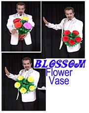 Tora Blossom Flower Vase Triple - Tora Magic Magician displays an attractive Flower Vase with five blossoms to spectators, then he removes the blossoms from the vase. With a wave of the hand, the blossoms bloom! He removes the blossoms again, and in a magic gesture the vase blooms again. Once more he removes the blossoms and third production of blossoms fills the vase! This vase can change color of the Blossoms or even it can produce them in their previous color. This incredible item comes with 20 blossoms,