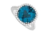 Blue Topaz and Diamond Ring : 14K White Gold - 3.50 CT TGW Size 13