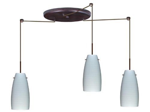 #Glass:Chalk, Light Bulb:(3)100w A19 Med F Incand, Finish:Bronze Three-light multi pendant with handcrafted glass shades. 3x stem hooks included. 10' SVT-type cord, complete with 5 decorative sleeve at the socket holder. Jacket coordinates with metal finish. Plated stamped steel construction canopy. Installs directly to a 4 octagonal ceiling box. Suitable for sloped ceilings.
