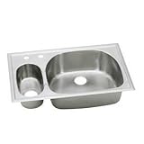 | ✚✚✚ Elkay ECGR332210R2 Harmony Bowl Double Basin Kitchen Sink Elevate the culinary experience with the professional grade Harmony sink. Meticulous attention to form and function creates a new standard for the connoisseur. Fine quality sink formed of #18 gauge, type 304 nickel bearing stainless steel. Top mount. DESIGN FEATURES Bowl Depth: ECGR3322L/R - 8' (large bowl), 6-1/16' (small bowl); ECGR332210L/R - 10' (large bowl), 6-1/16' (small bowl). Exposed surfaces are polished to a soft satin finish. Bowl and Faucet Deck Recess: 3/8' below outside edge of sink. Underside: Fully protected by heavy duty Sound Guard undercoating to dampen sound and prevent condensation.